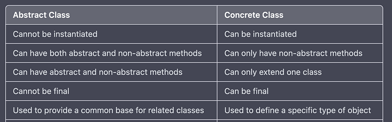 - You expect that classes that extend your abstract class have many common methods or fields, or require access modifiers other than public (such as protected and private).